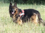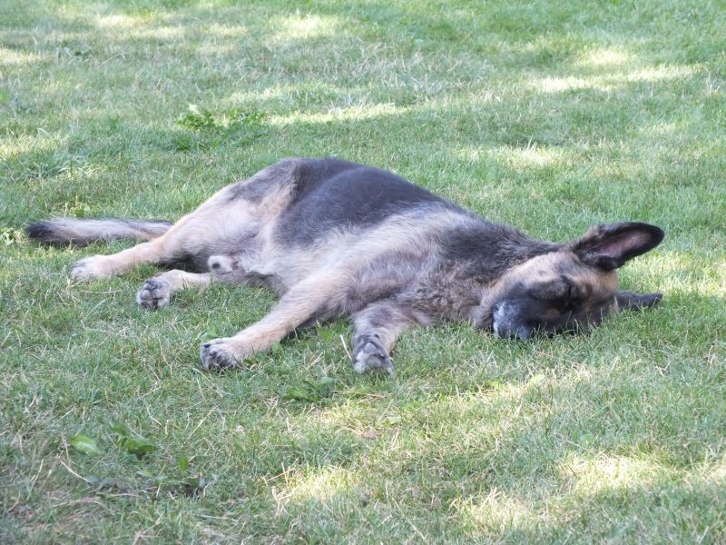 Nach anfänglich etwas bellen und bischen Macho gabs keine Probleme. Rocky wird von Woche zu Woche fitter. Morgen bei 15°C gehts über 1,5 - 2 Std durch Feld und Wald. Nachmittags bei 30°C freut es keinen von uns. Also warten bis 20 Uhr kurze Runde ums Feld (ca. 40 min) und alles ist ok. Eben ein typischer Schäferhund.